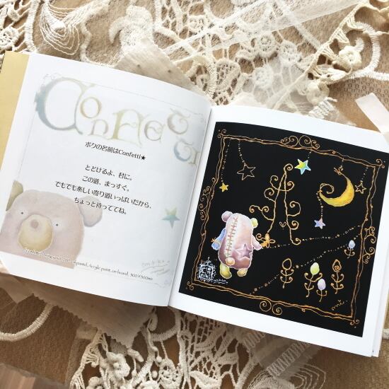 そんなお菓子と同じ名前をもつこのクマさんConfettiも、自分とみんなにシアワセの種を蒔いてあげる、そんなクマのぬいぐるみなんです。
