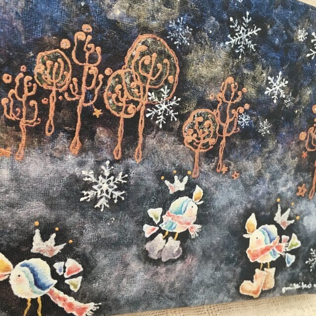 雪景色の中、冬色に包まれたキレイ色のトリさんセミフレッドたちの一枚です。